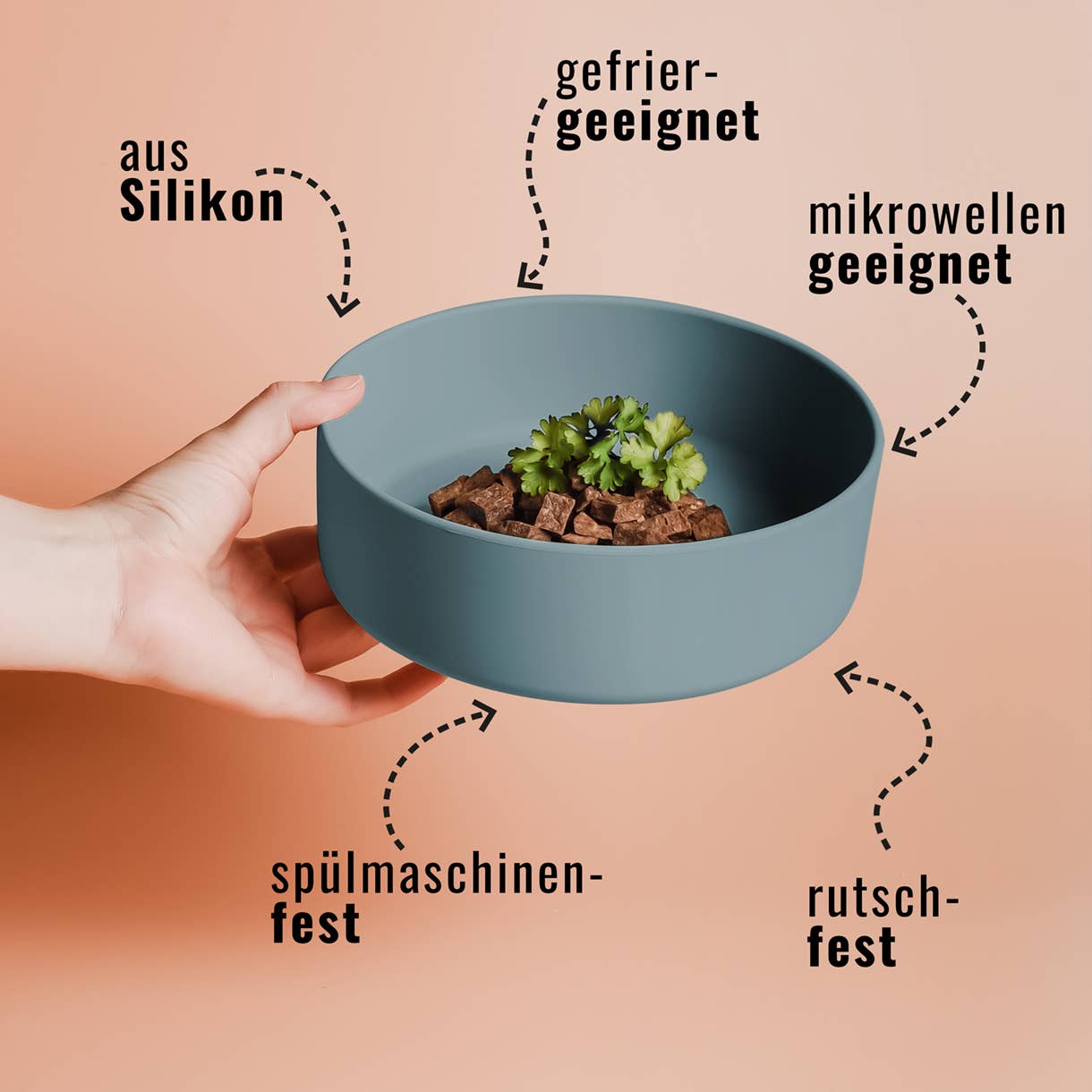 Ez a csúszásmentes szilikon etetőtál elegáns és praktikus választás mindennapi etetéshez. A rugalmas szilikon jól tapad a sima felületekhez, így evés közben nem csúszik el. Könnyű, tartós és teljesen biztonságos – szagmentes, törésálló, fagyasztó- és mikrohullámú sütő kompatibilis, valamint mosogatógépben is tisztítható. Ideális nedves és száraz eledelhez, valamint BARF etetéshez is. A letisztult, modern design tökéletesen illeszkedik bármilyen otthoni környezetbe.